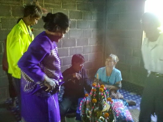 | Tout le monde vient nouer des cordelettes à nos poignets |